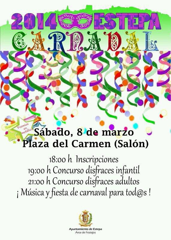 Este sábado, 8 de marzo, se celebrará en la Plaza del Carmen (Salón) la Fiesta del Carnaval de Estepa en la que tendrán lugar varias actividades.